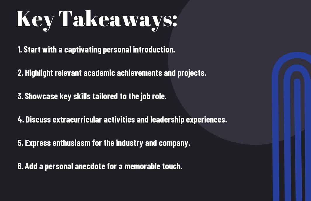 Interview settings can be overwhelming, especially when faced with the question, “Tell me about yourself.” This question often serves as the first opportunity to make a meaningful impression on potential employers. In this blog post, you will discover the top 10 sample answers that can guide you in crafting a compelling self-introduction tailored for various job roles. By focusing on your academic achievements, skills, and enthusiasm for the position, you will enhance your confidence and improve your chances of standing out during your job interviews.